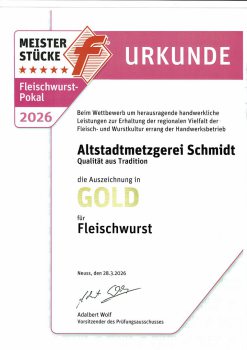 Eine weitere Goldmedaille für unsere beliebte Fleischwurst haben wir auch bei dem diesjährigen Fleischwurst-Wettbewerb gewonnen.