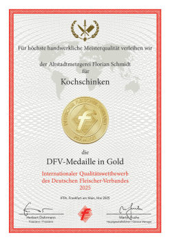 Auf der Internationalen Fleischwirtschaftlichen Fachmesse 2025 in Frankfurt wurden 26 Artikel von Florian Schmidt von einer internationalen Expertenjury bewertet. Er gewann 22 Gold,- und 4 Silbermedaillen. Die IFFA wird vom Deutschen Fleischer-Verband alle drei Jahre ausrichtet.